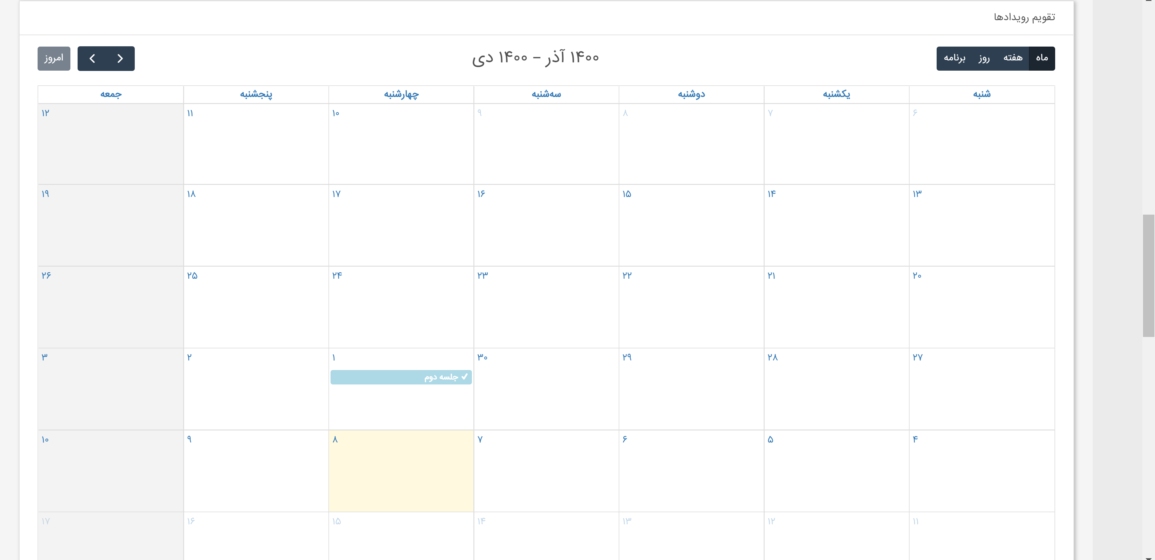 2. امکان ثبت رویداد جدید با تعیین تاریخ، ساعت و توضیحات کامل