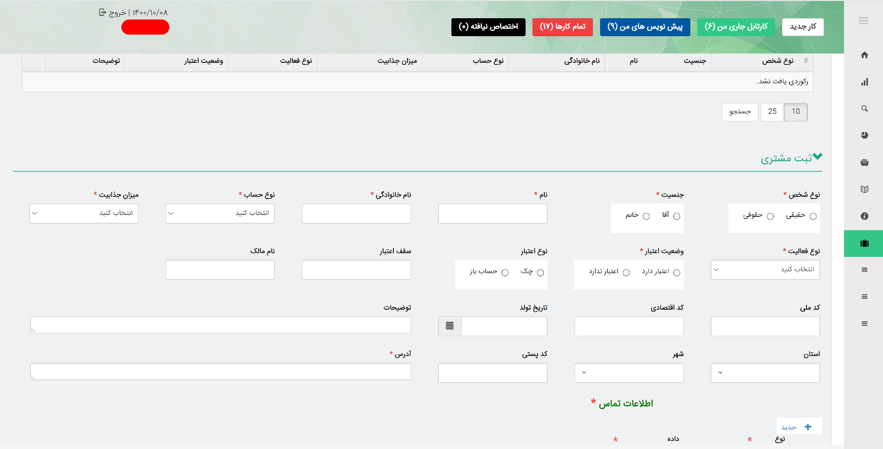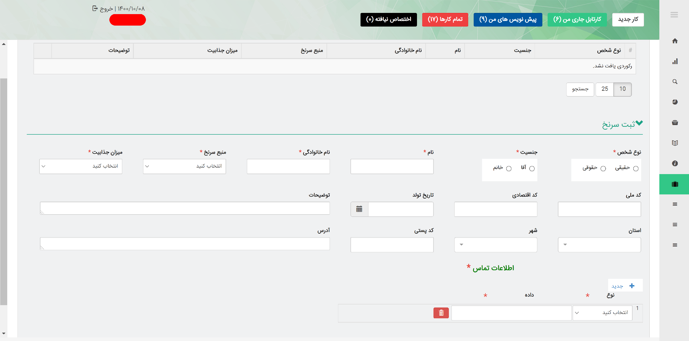 دفترچه تلفن دیجیتال در نرمافزار پیشرو، اطلاعات تماس مشتریان، کارکنان و طرفهای تجاری را ساختارمند و قابلدسترسی نگه میدارد.