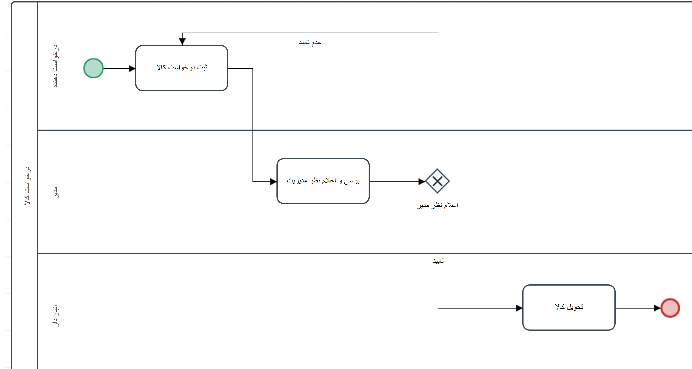 مراحل اجرای فرآیند درخواست کالا در نرمافزار BPMS