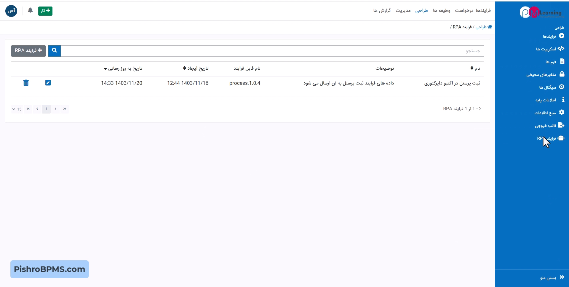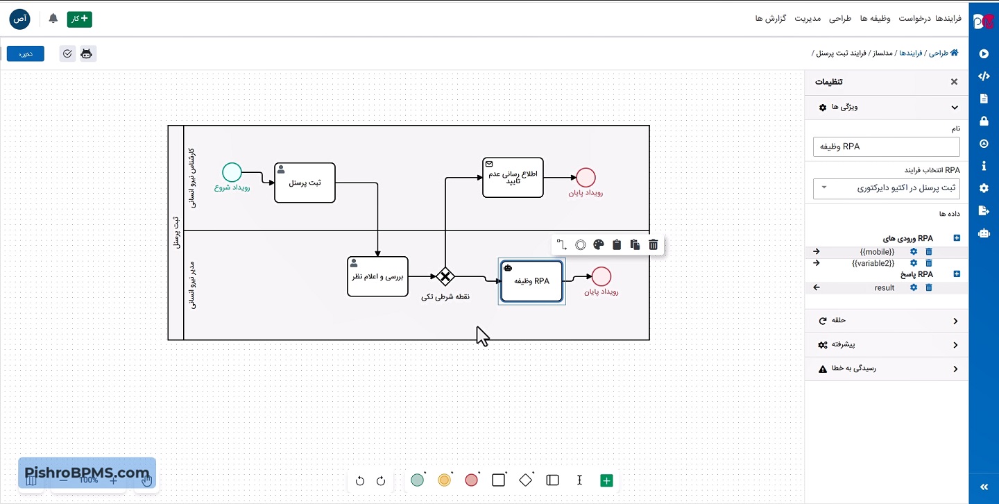 افزونه ارتباطی RPA در نرمافزار مدیریت فرایند پیشرو توس