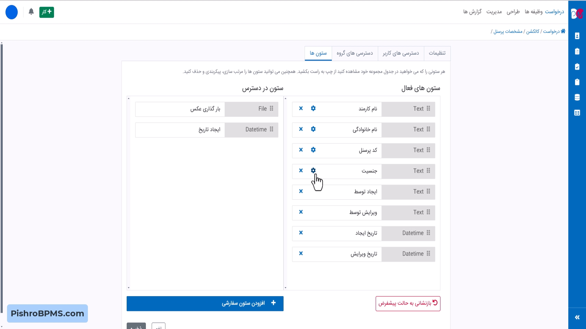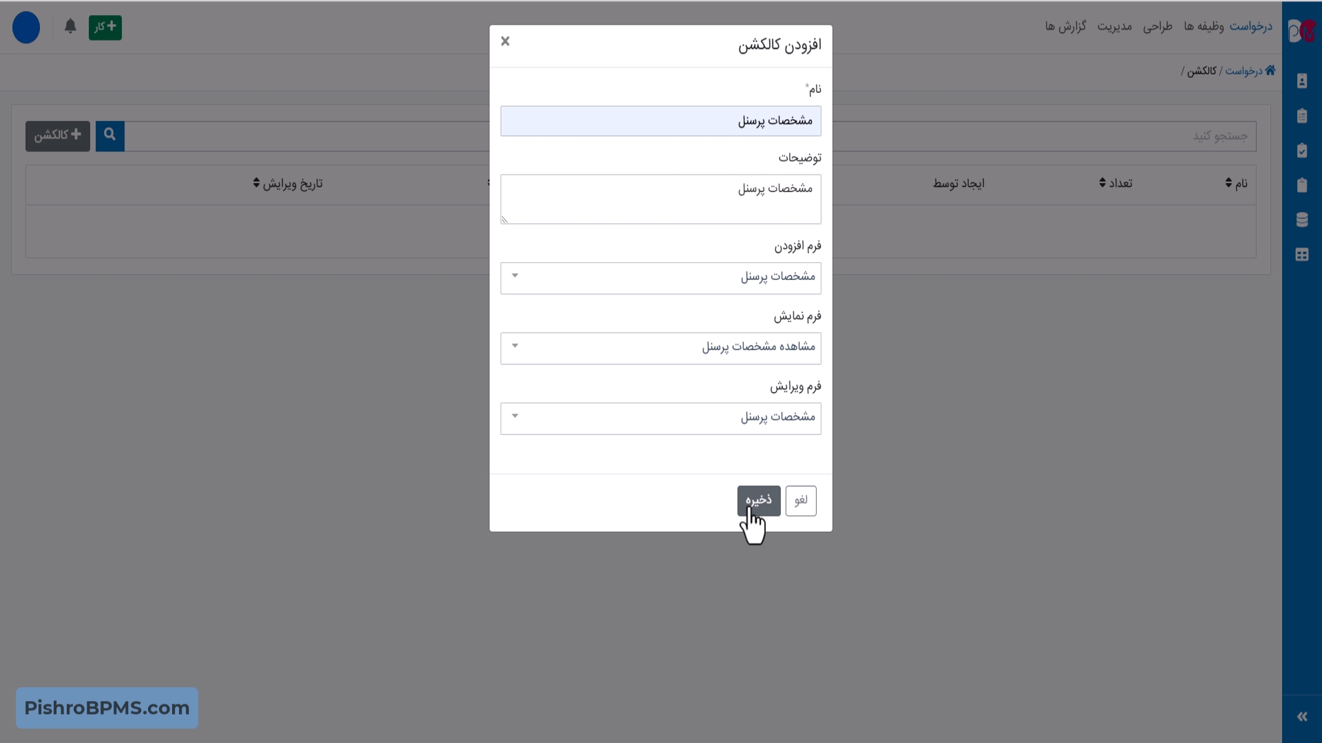 به عنوان مثال، برای مسئول نیرو انسانی یک کالکشن با عنوان مدیریت پرسنل ایجاد می کنید، در نتیجه وی می تواند پرسنل خود را در این لیست با ستون داده های دلخواه مشاهده نماید و رکوردهای پرسنل را ثبت، ویرایش، حذف و یا فیلتر کند.