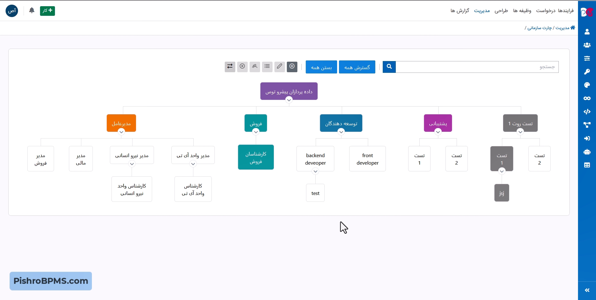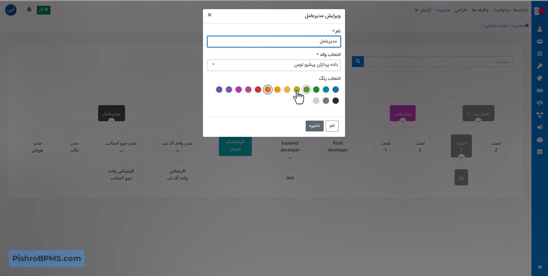 2. امکان ست کردن رنگ بندی دلخواه در نقاط مختلف چارت سازمانی